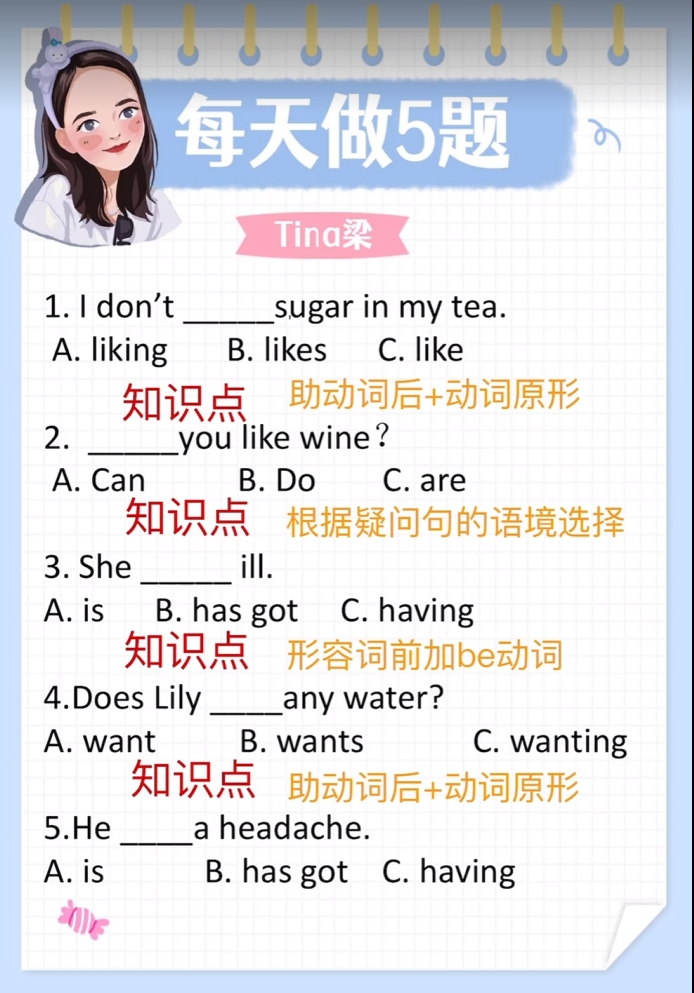 Tina梁老师《小升初英语每日五题讲解课(200天)》