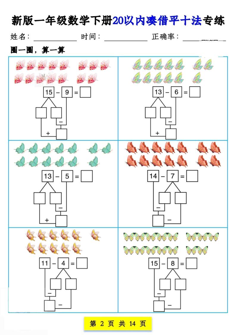 首页 > 全部 > 数学 > 新版一年级数学下册20以内凑借平十法专练14页